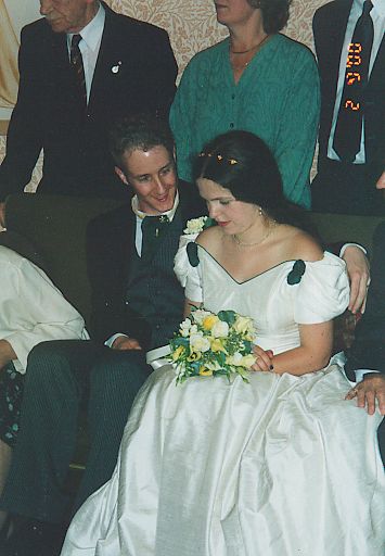 Here's some more pictures from our wedding, which took place in Exeter College, Oxford on the 2nd of September 2000 - this time they were taken by Jonathan Stevens and Becky MacLeod. Click on any picture for a larger version.